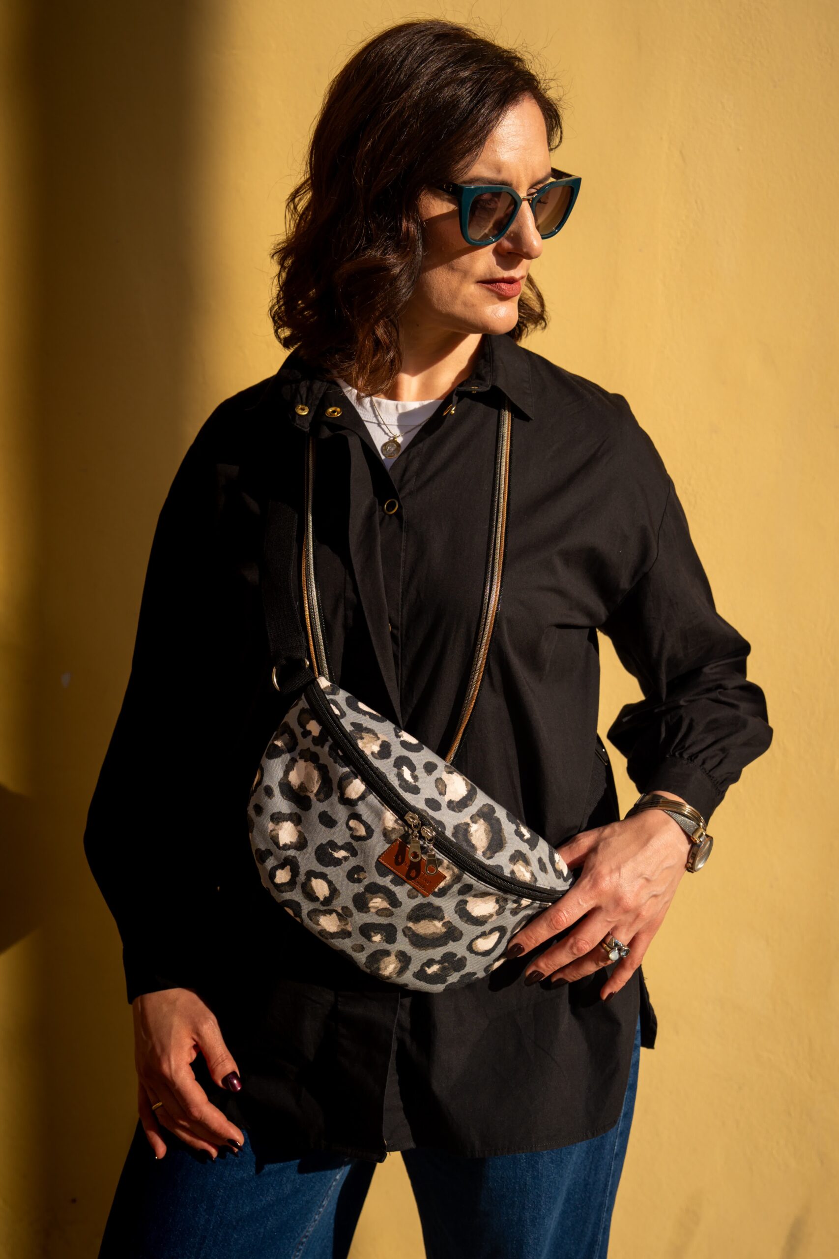 Χειροποίητο τσαντάκι μέσης Leopard Grey Street Calm