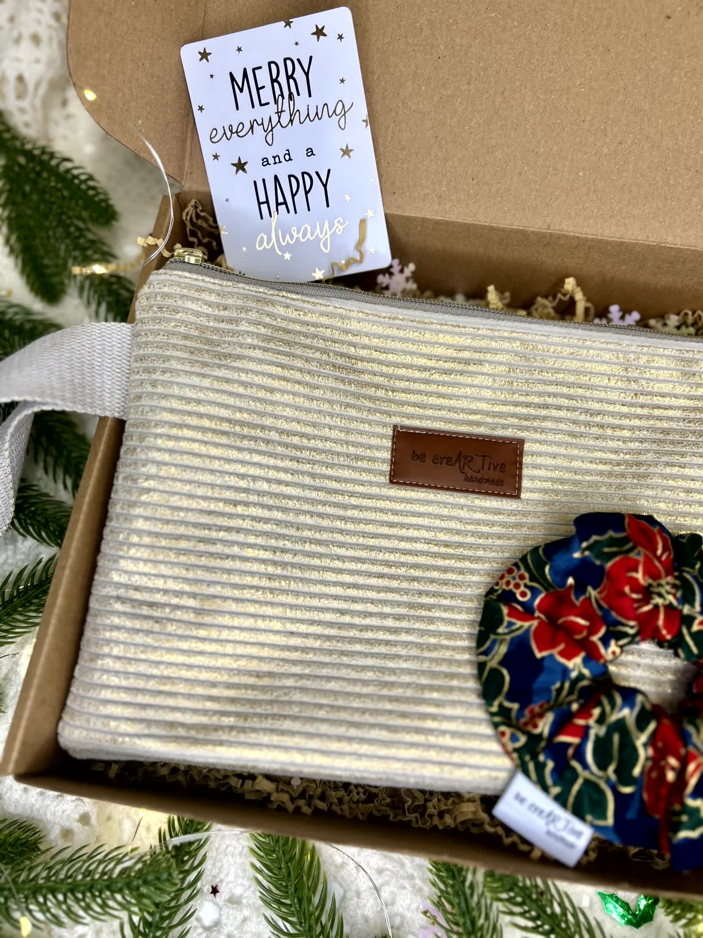 Το be creARTive Christmas Set περιλαμβάνει κοτλέ τσαντάκι σε υπέροχη υφή και σε χρώματα που καλύπτουν κάθε γούστο, κυπαρίσσι, ματζέντα, μωβ, μπλε, ροζ πούδρα, καθώς και επιλογές με κοτλέ που ασημίζει ή χρυσίζει.