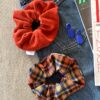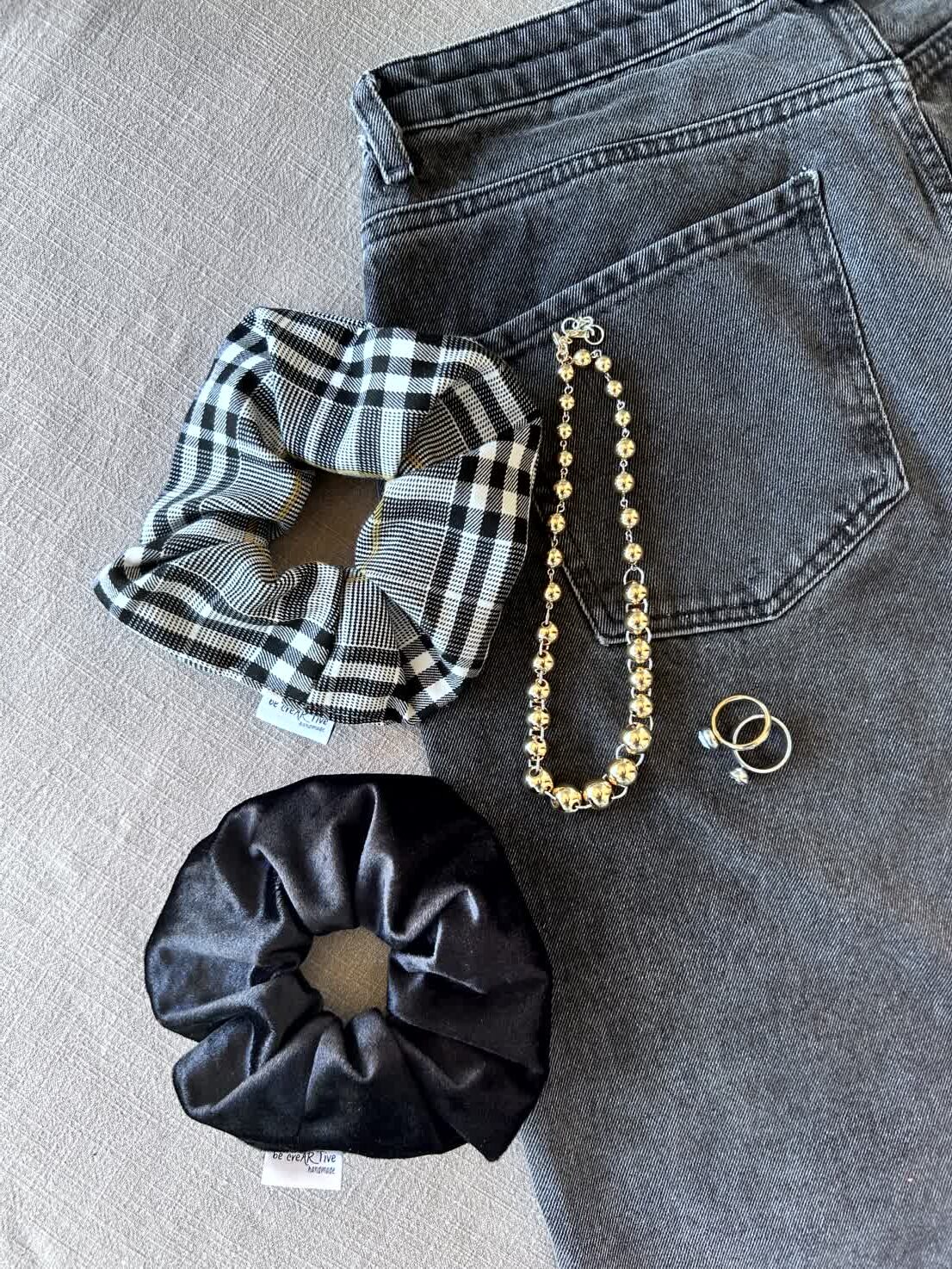 Υφάσματα: Βελούδο μαύρο & ασπρόμαυρο καρό με μουσταρδί λεπτομέρεια