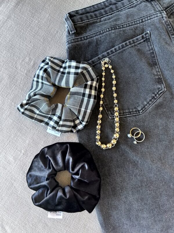Το πιο elegant σετ της συλλογής. Το Black & White Plaid Set ενώνει το μαύρο βελούδο με λεπτή μουσταρδί πινελιά στο καρό, για ένα chic αποτέλεσμα που ταιριάζει τέλεια με βραδινές ή γιορτινές εμφανίσεις.