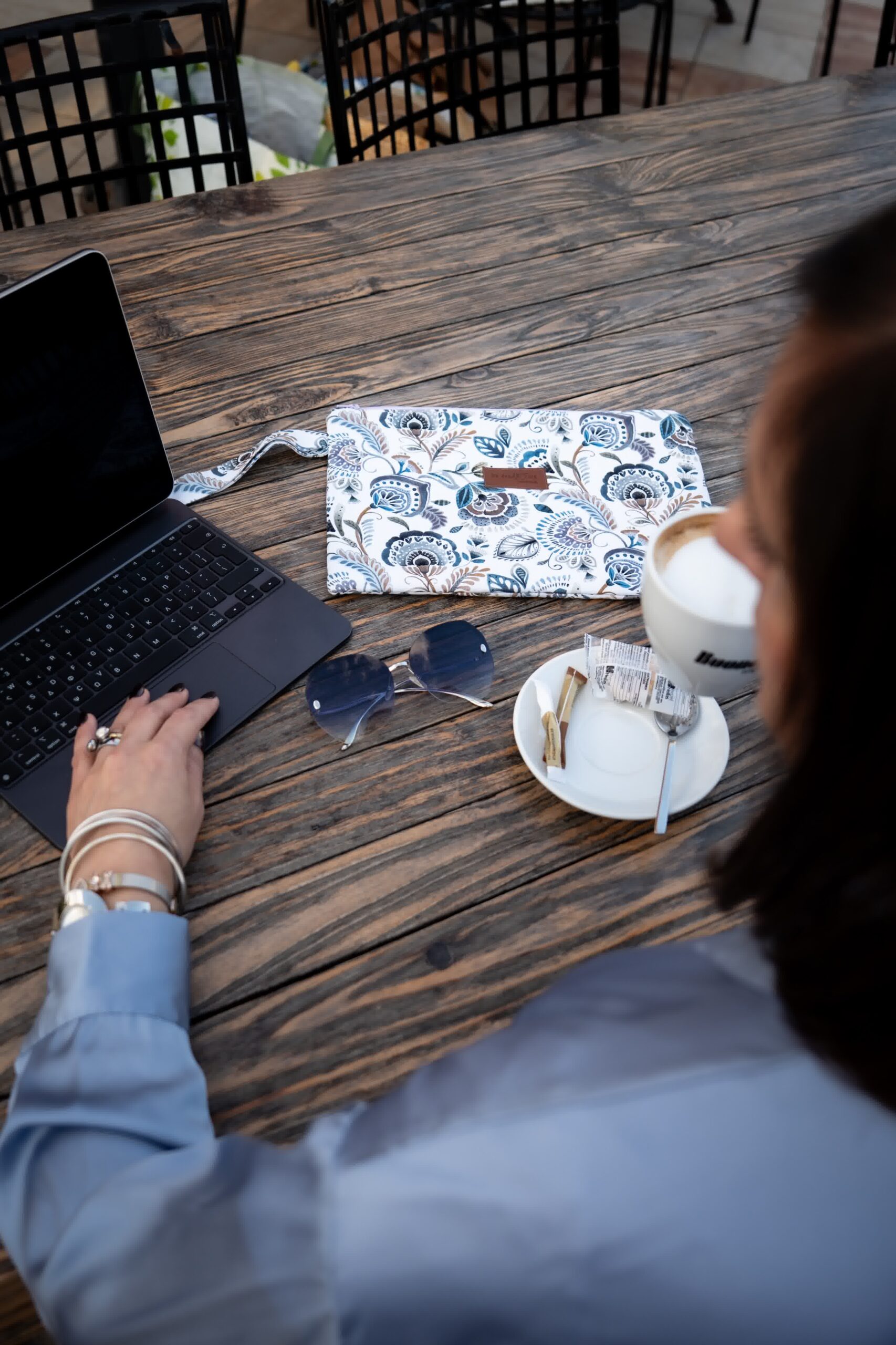 Η λεπτομέρεια του χερουλιού από το ίδιο ύφασμα αναδεικνύει τη χειροποίητη φροντίδα, ενώ το φερμουάρ εξασφαλίζει λειτουργικότητα.
