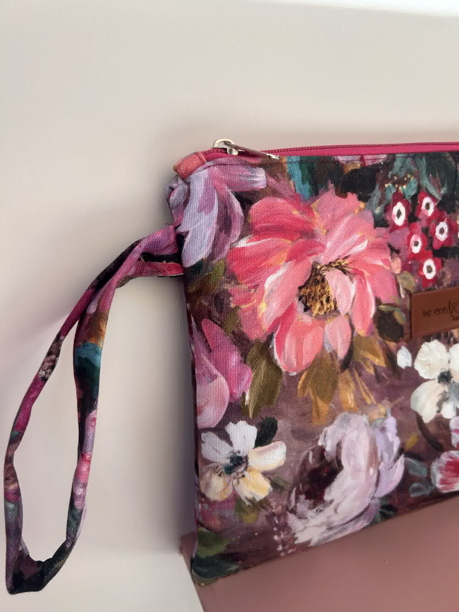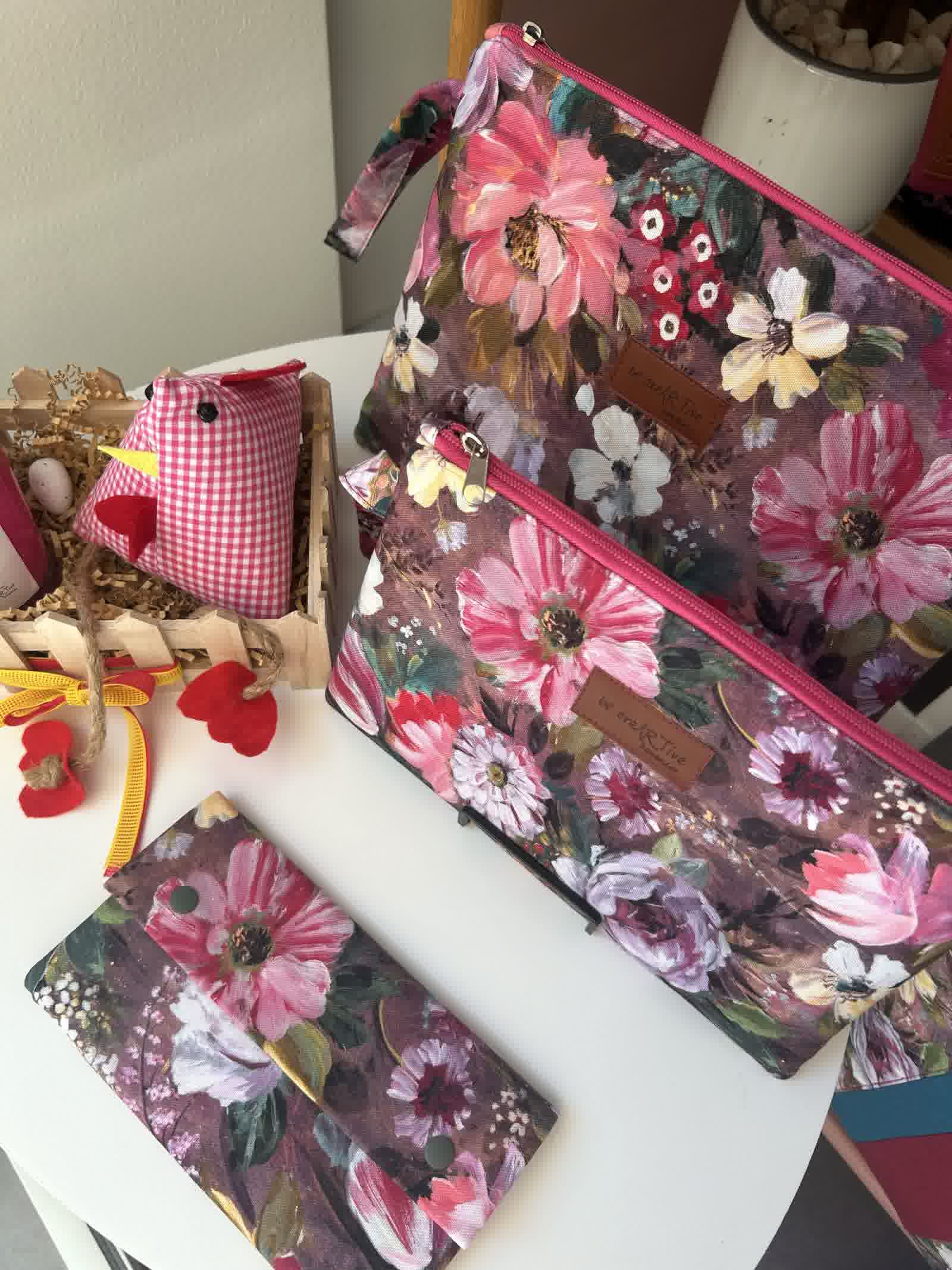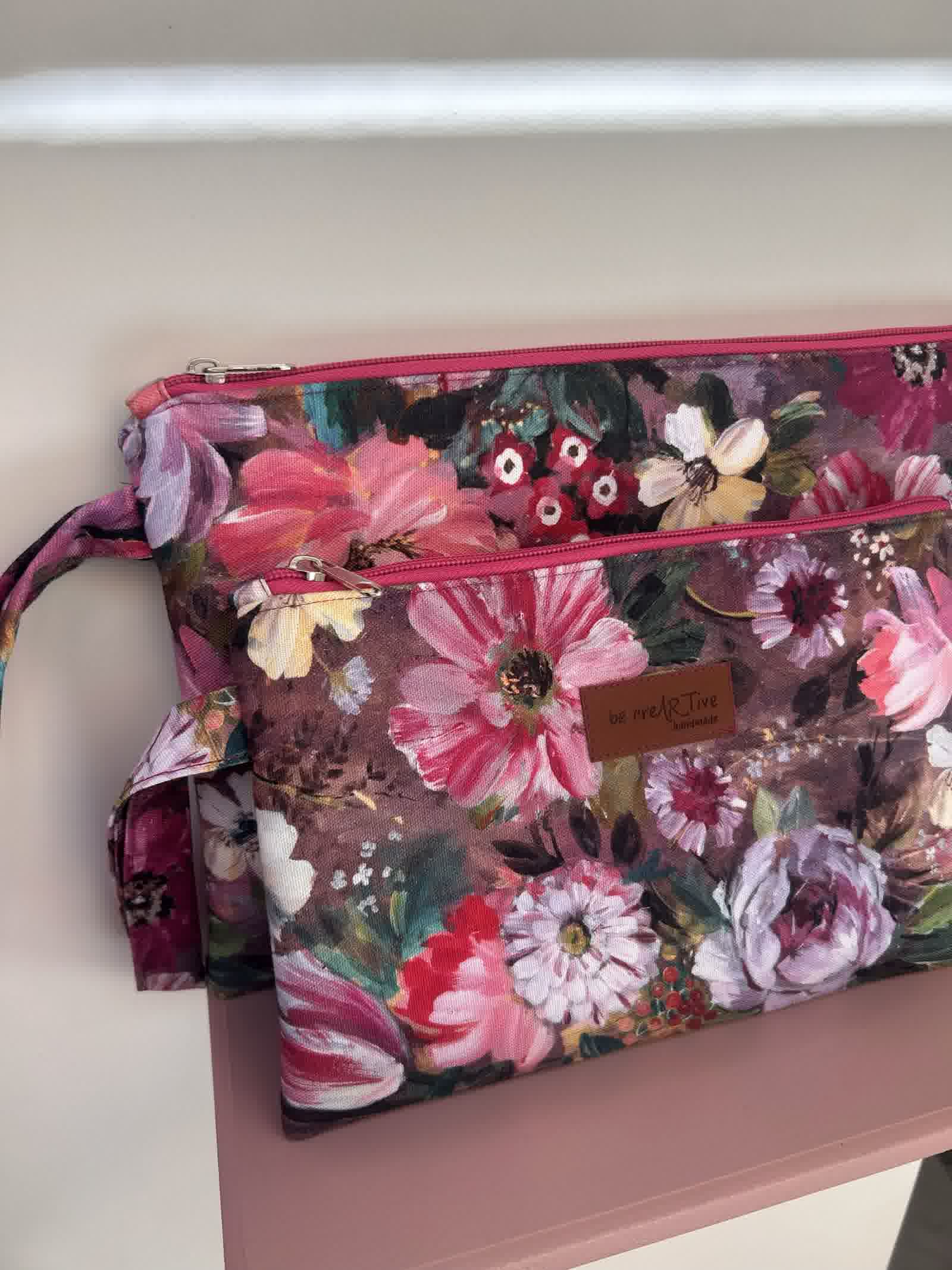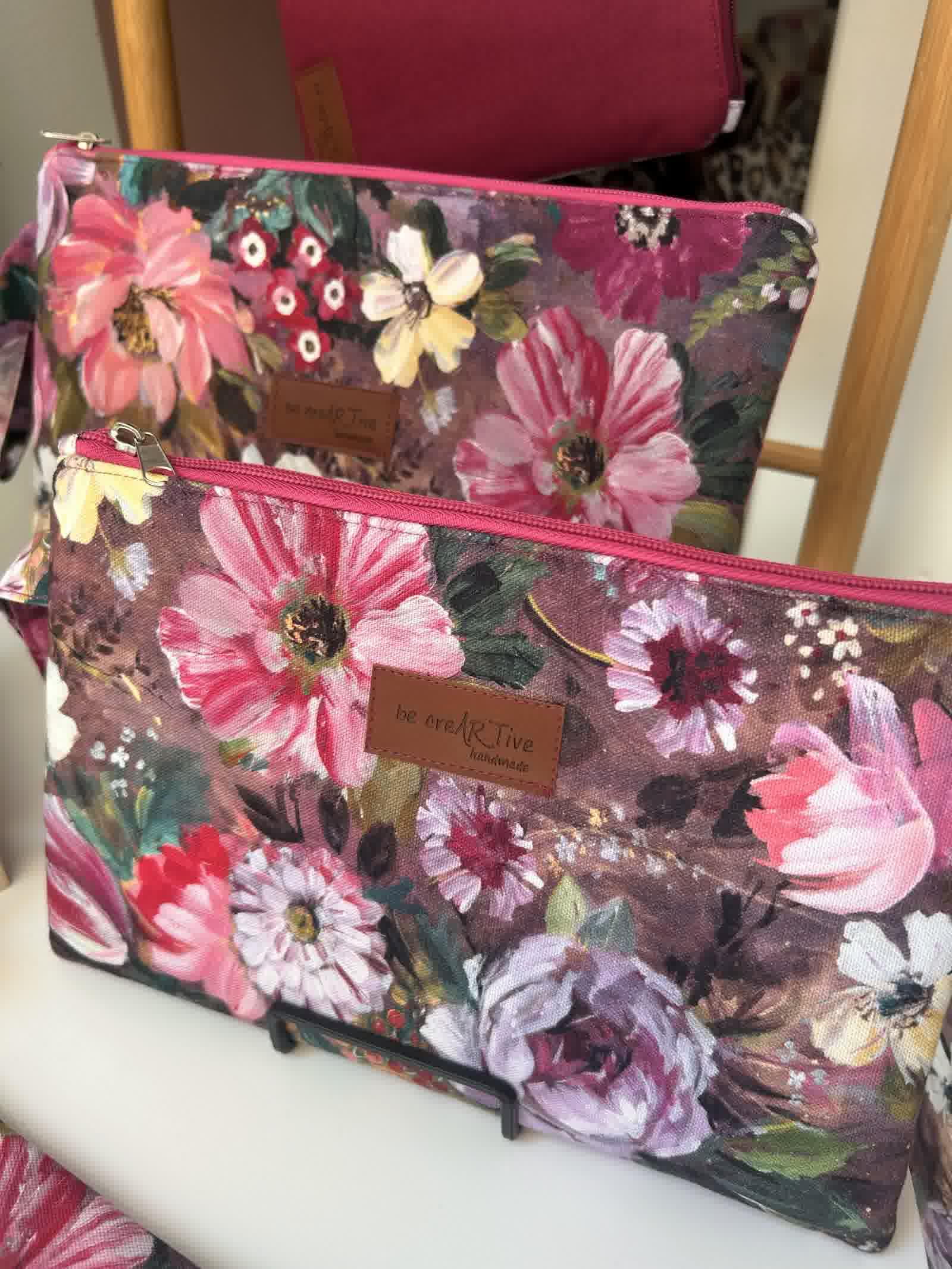 Ένα πρακτικό χειροποίητο πλακέ τσαντάκι σε δύο μεγέθη με το χαρακτηριστικό floral ύφασμα της συλλογής «Χρώμα… για να ανθίζεις».