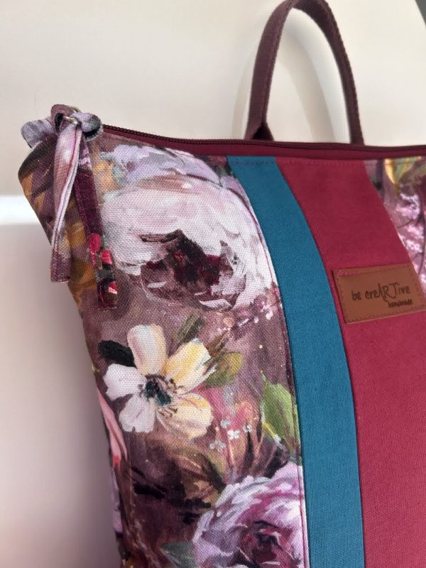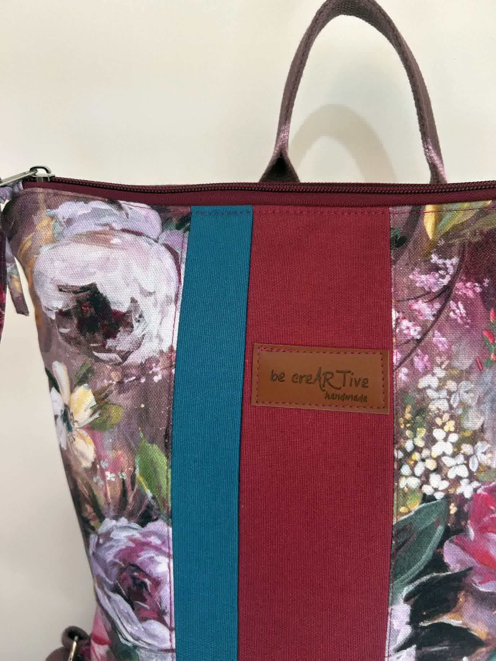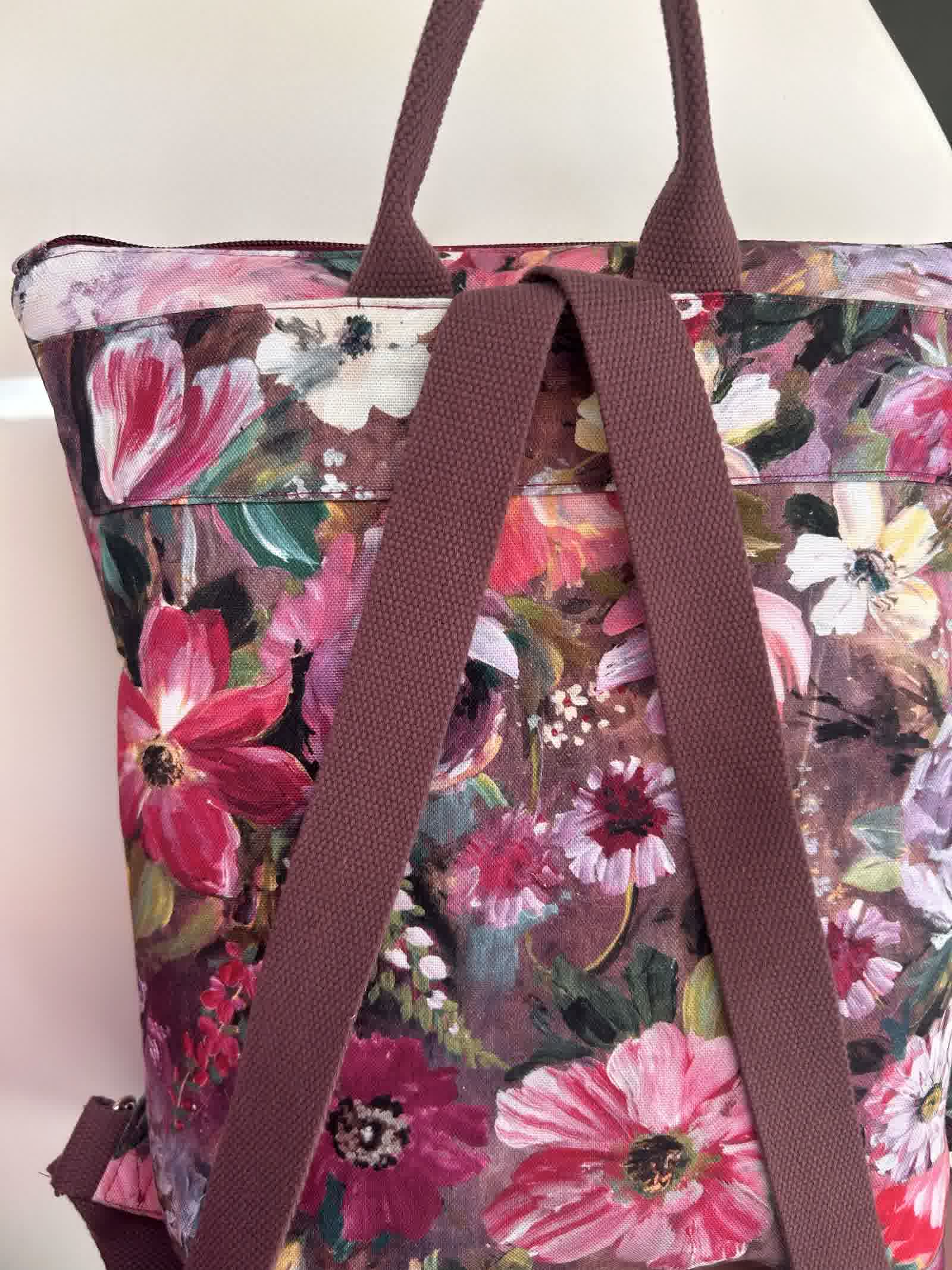 Ένα χειροποίητο σακίδιο πλάτης που συνδυάζει το ιδιαίτερο floral ύφασμα της συλλογής «Χρώμα… για να ανθίζεις» με μονόχρωμες λεπτομέρειες.