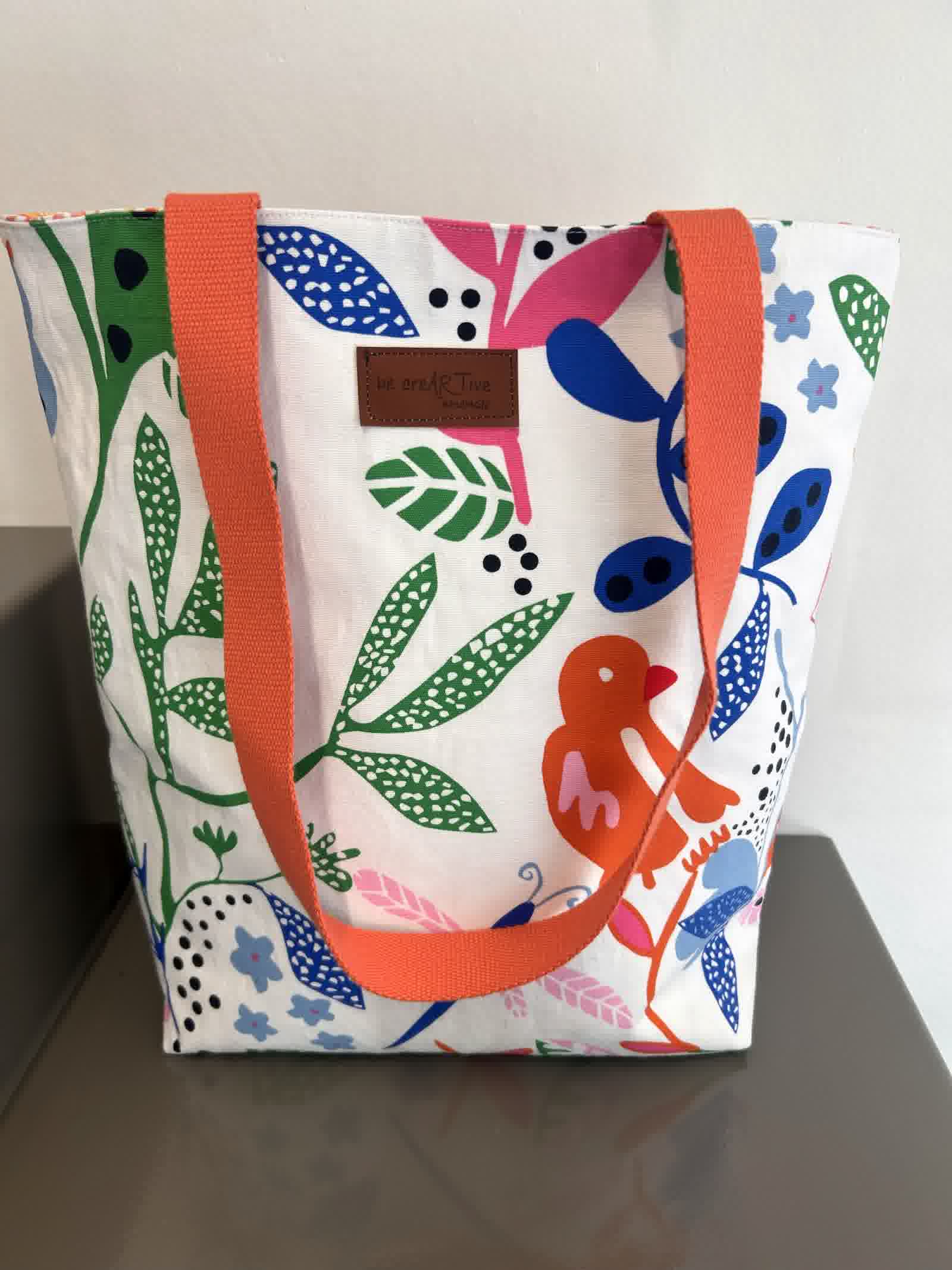 Η Tropical Garden tote bag είναι ραμμένη από ανθεκτικό καμβά και σχεδιασμένη ώστε να συνδυάζει πρακτικότητα και ζωντανή αισθητική.