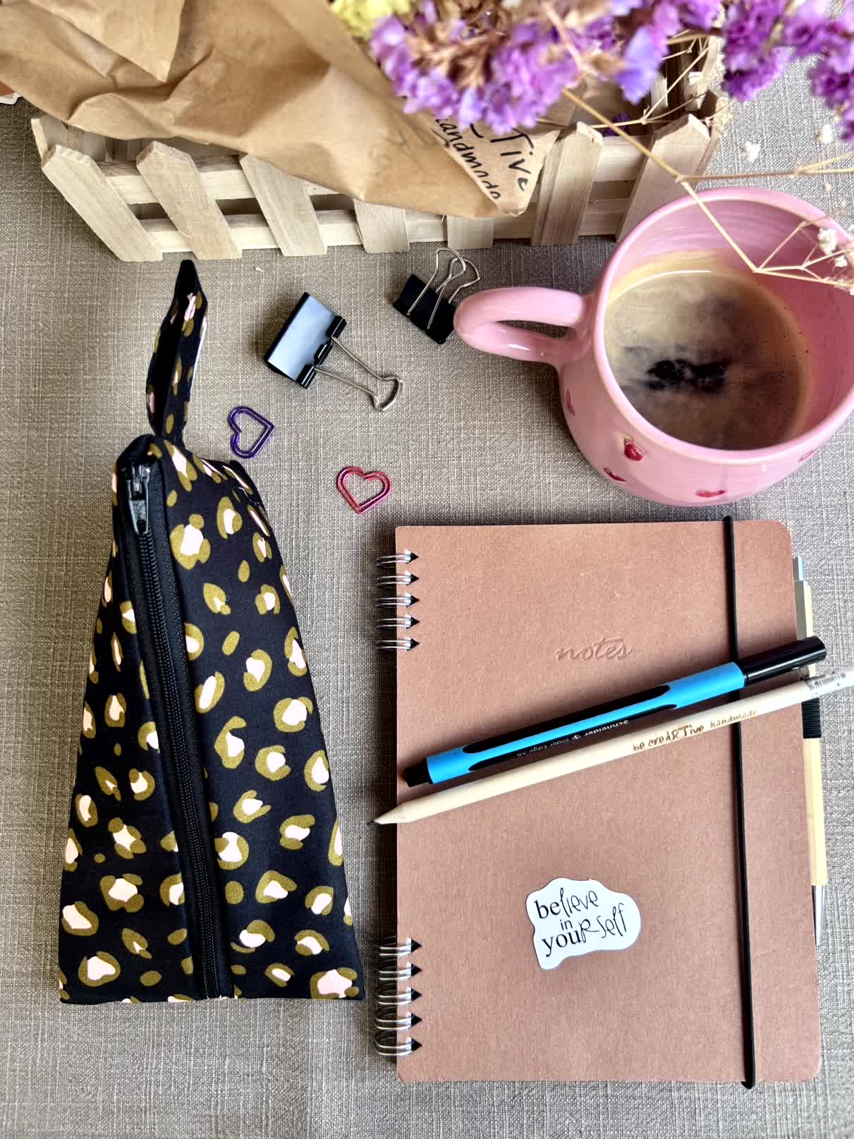 Χειροποίητη κασετίνα με τριγωνικό σχήμα, ιδανική για στυλό, μολύβια ή μικροαντικείμενα.