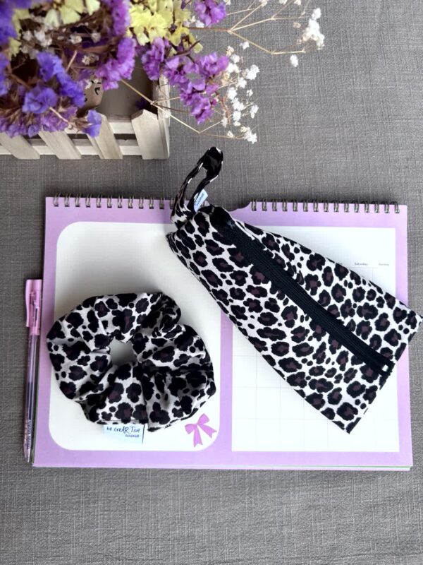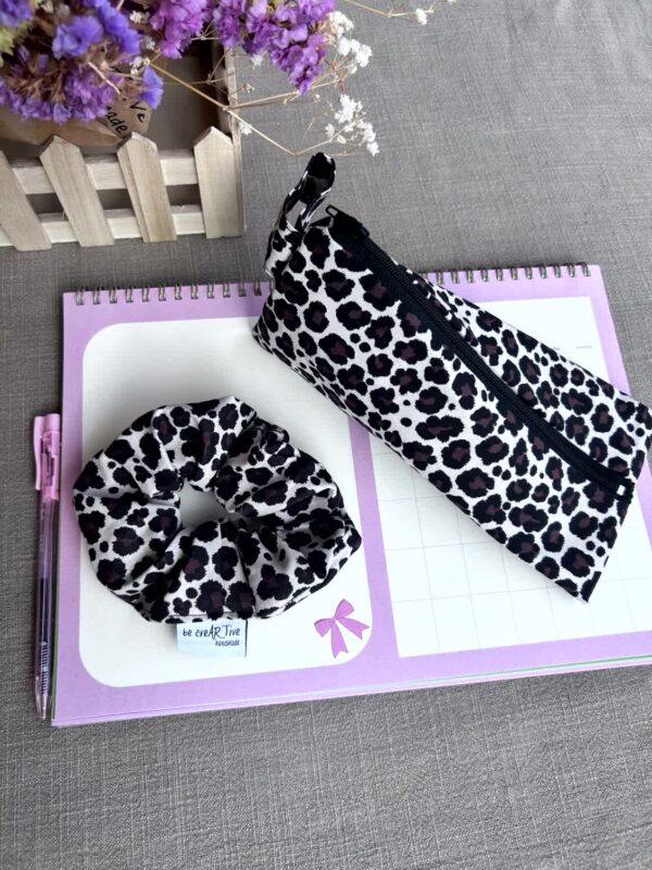 Τριγωνική Κασετίνα Σετ με Scrunchie Classic Leopard, Χειροποίητο Σετ Δώρου