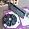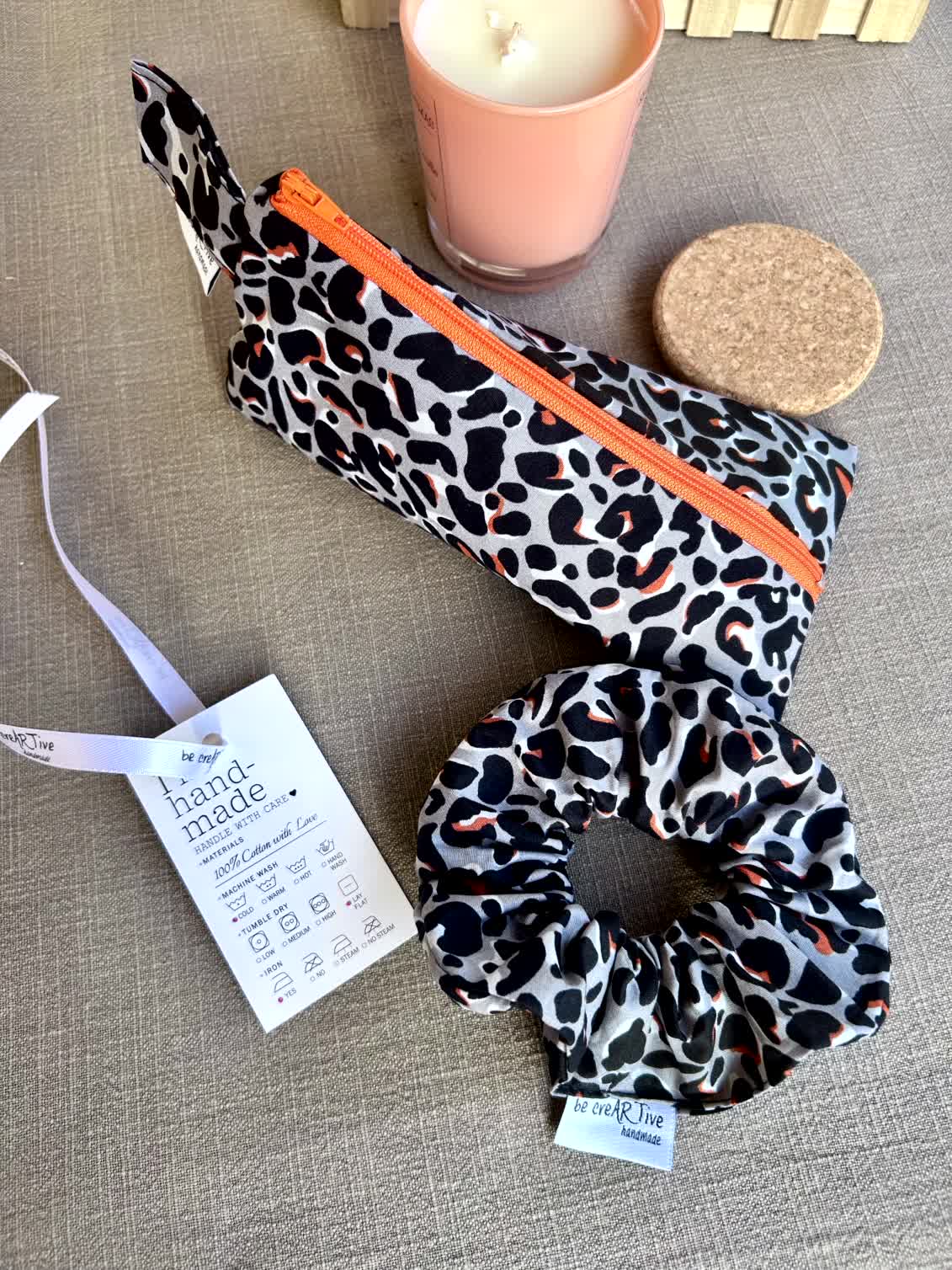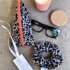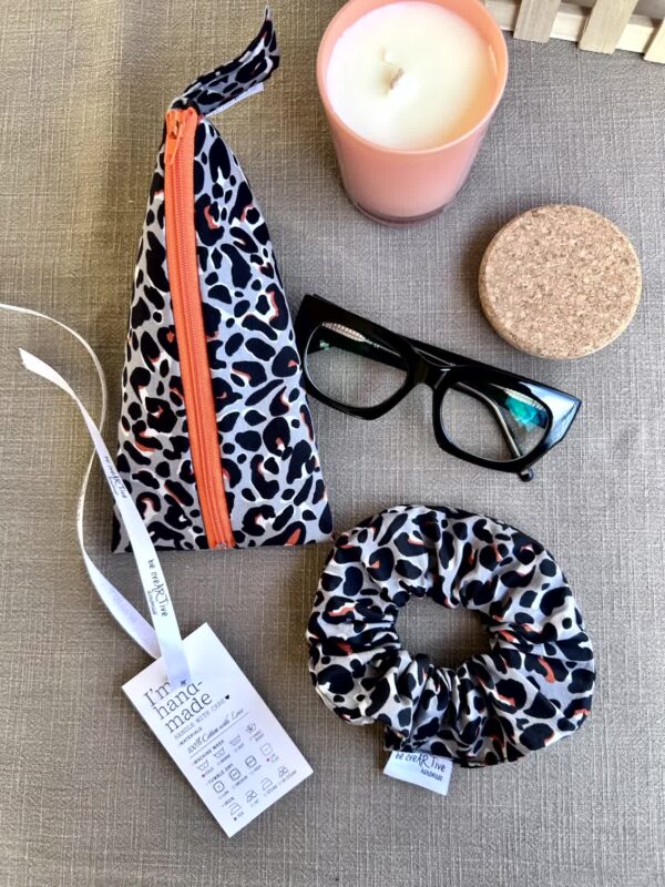 Τριγωνική Κασετίνα Σετ με Scrunchie Leopard Grey, Χειροποίητο Σετ Δώρου
