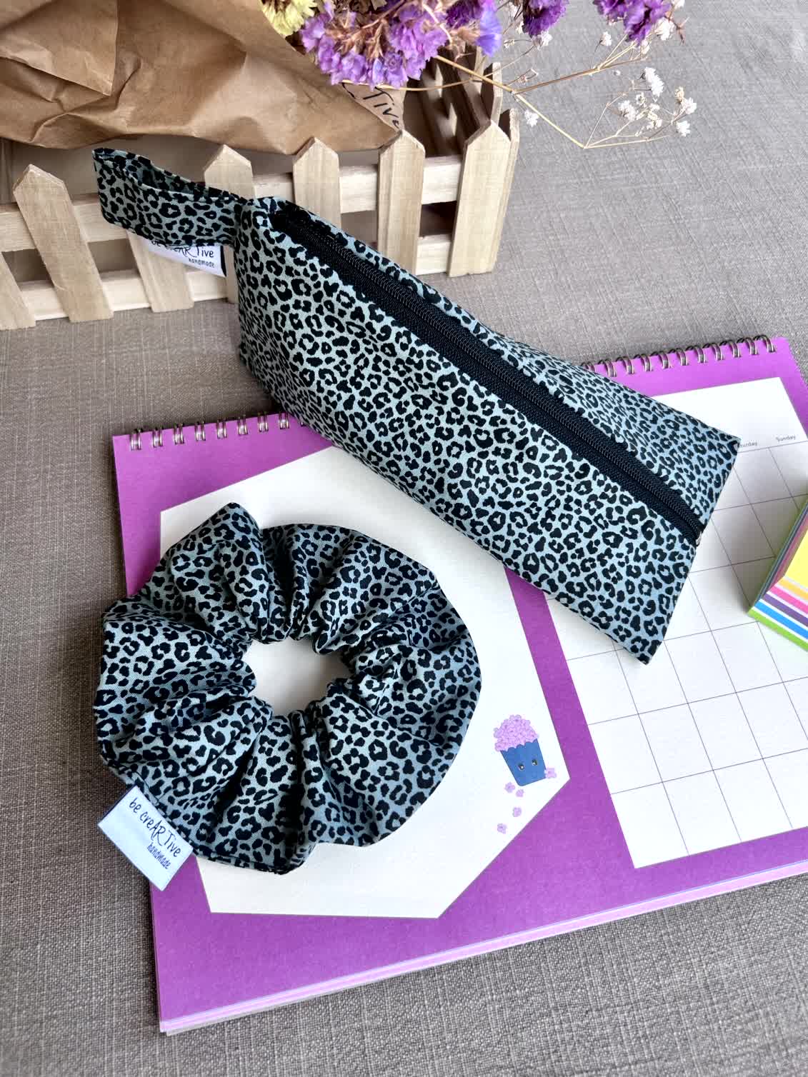 Τριγωνική Κασετίνα Σετ με Scrunchie  Leopard Mint , Χειροποίητο Σετ ΔώρουΤριγωνική Κασετίνα Σετ με Scrunchie Leopard Mint , Χειροποίητο Σετ Δώρου