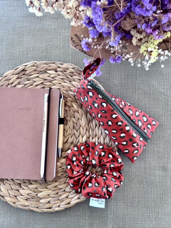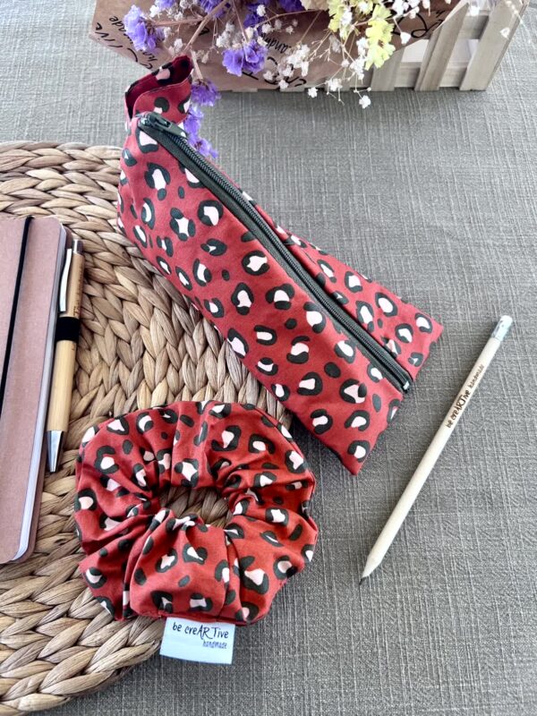 Τριγωνική Κασετίνα Σετ με Scrunchie Leopard Terra, Χειροποίητο Σετ Δώρου