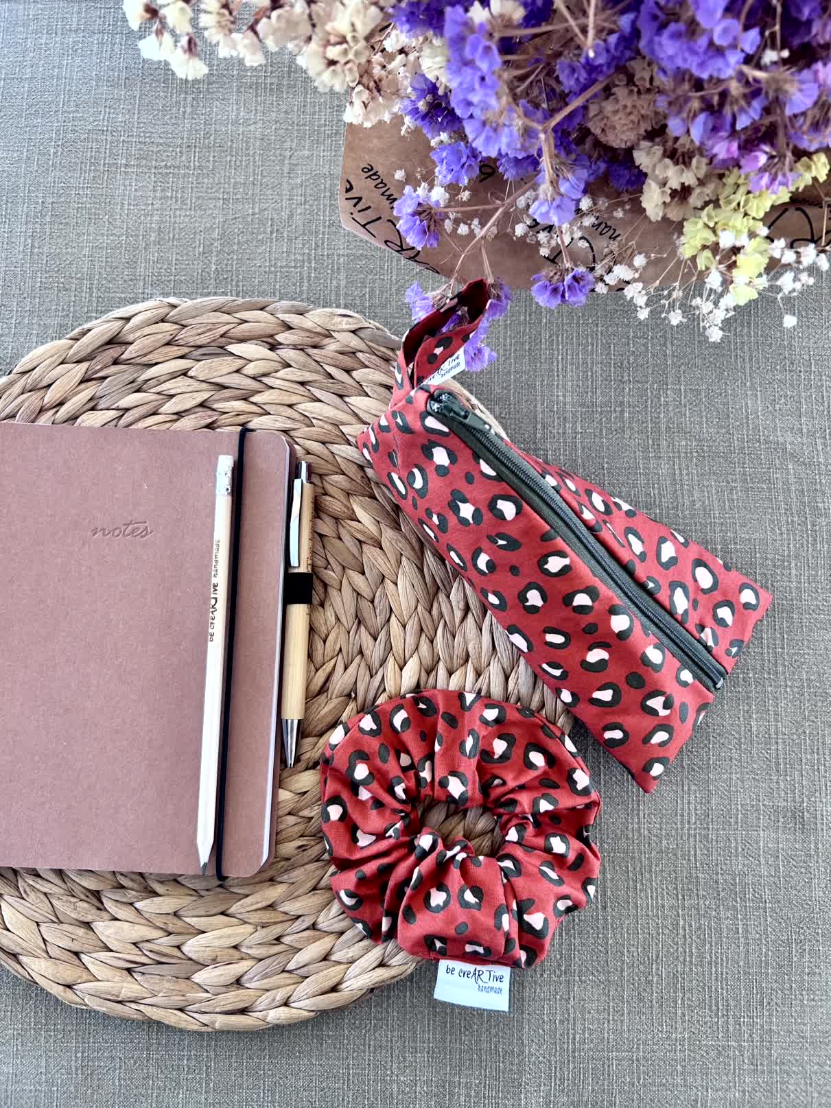Ένα χειροποίητο σετ που συνδυάζει πρακτικότητα και αισθητική, ιδανικό για καθημερινή χρήση στο σχολείο, στο γραφείο ή στην τσάντα σου.