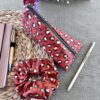 Σετ τριγωνική κασετίνα και λαστιχάκι μαλλιών (scrunchie) από το ίδιο ύφασμα, φτιαγμένα με αγάπη και παιχνιδιάρικη διάθεση.