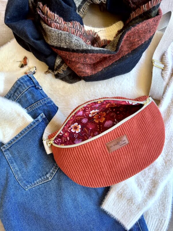 Κατασκευασμένη από μαλακό βαμβακερό κοτλέ ύφασμα με ενίσχυση, διαθέτει ευρύχωρο εσωτερικό με παιχνιδιάρικη βαμβακερή φόδρα, φερμουάρ διπλής κατεύθυνσης και ρυθμιζόμενο ιμάντα. Φοριέται χιαστί ή στη μέση και προσαρμόζεται εύκολα σε κάθε στυλ.