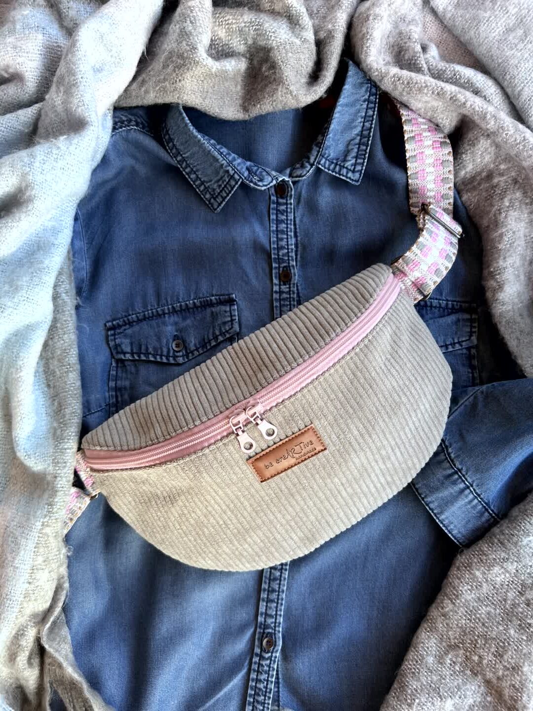 Το Soft Grey Cord belt bag είναι η κομψή και ήρεμη εκδοχή της σειράς.